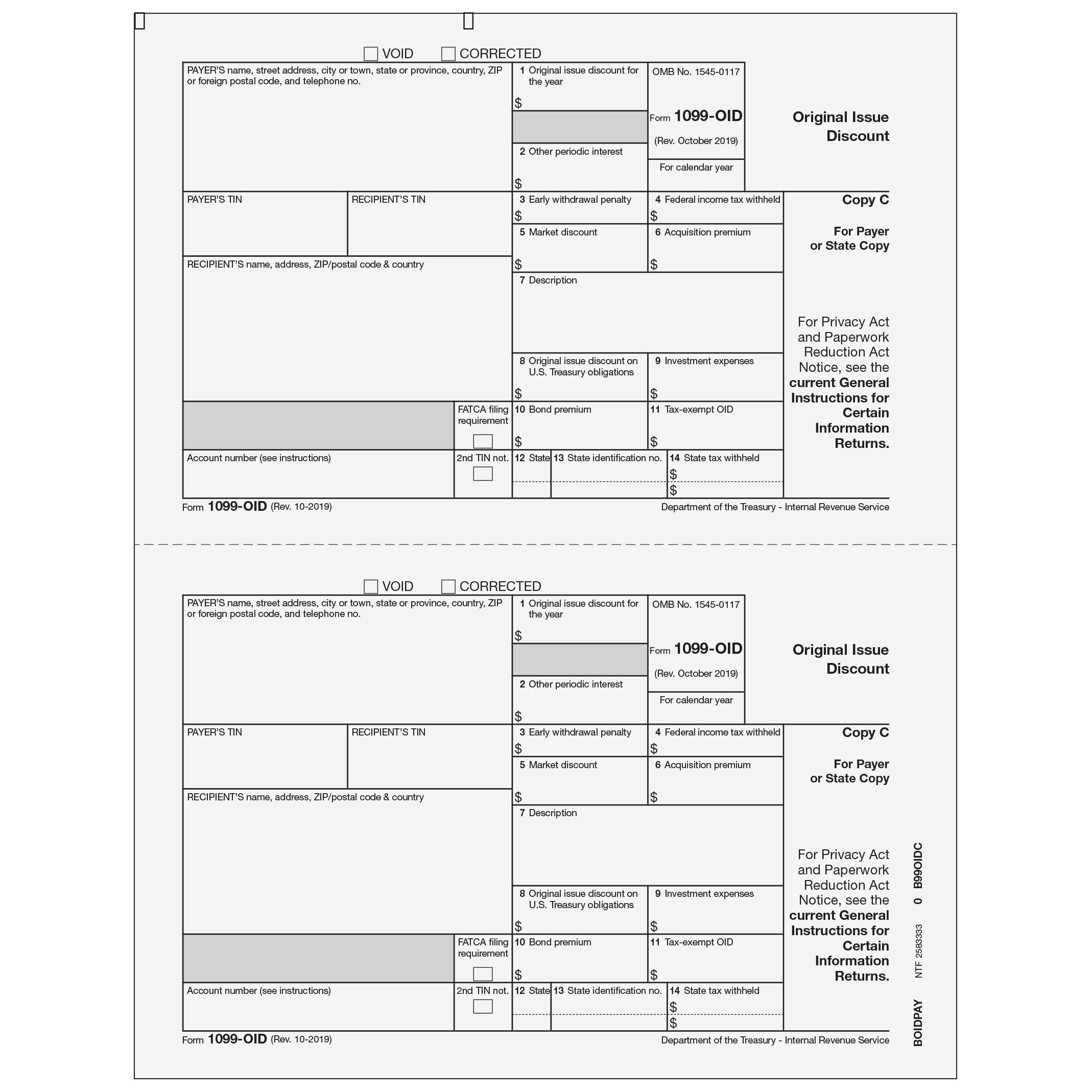 to print information for Payer or State. Forms are 2up on an 8 1/2 x 11" sheet and are printed on 20# laser paper.