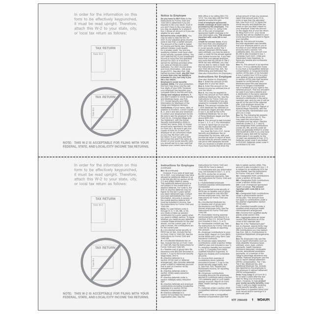 4 up W-2 with current year instructions on the back, one copy per employee.