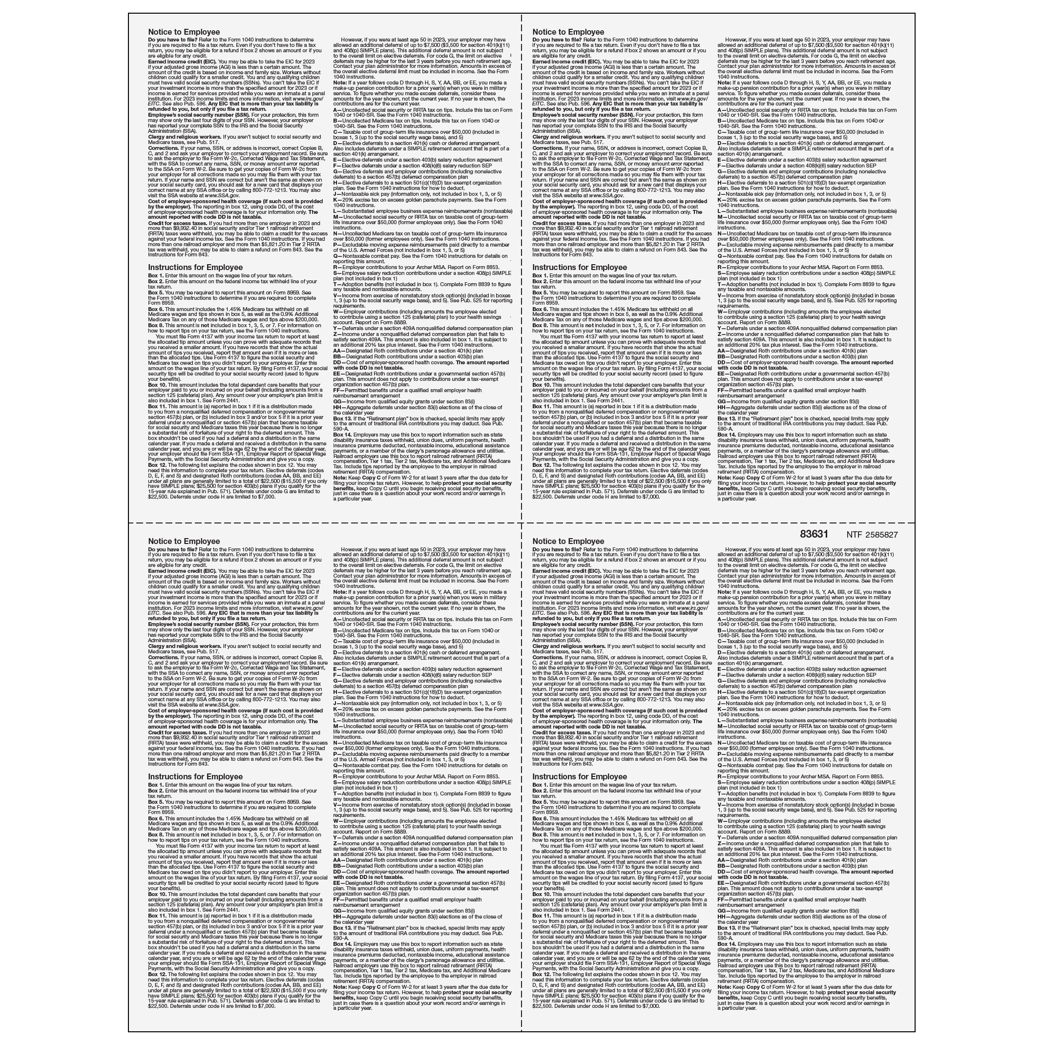 W-2 4 quadrant blank form with complete current year instructions on each quadrant.