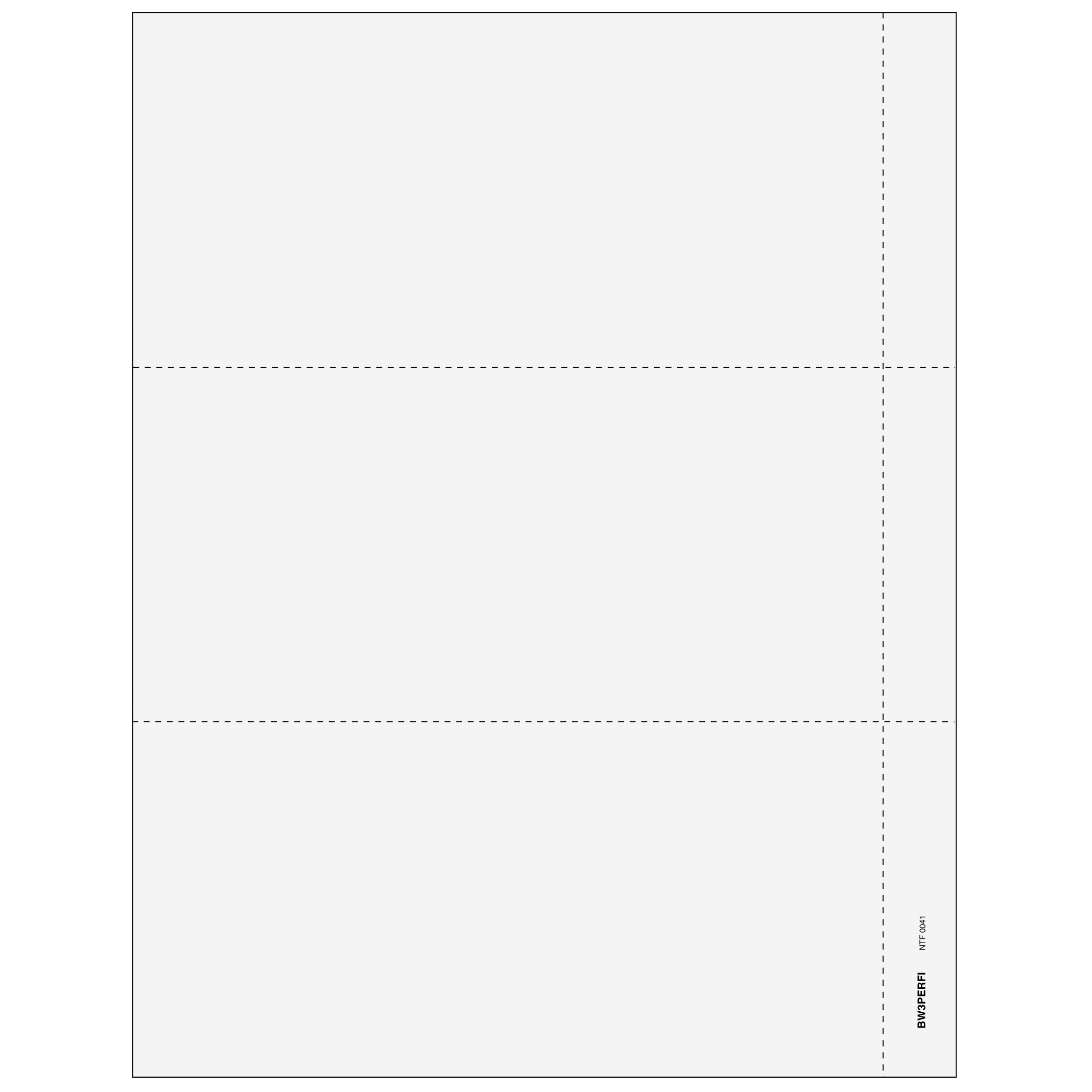 Use this blank laser paper to print 3 employee W-2 copies.  Current year instructions included, starting on the top copy, continuing on the bottom copy. Two horizontal perforations and a 3/4" right hand side perforation.  20# laser paper.