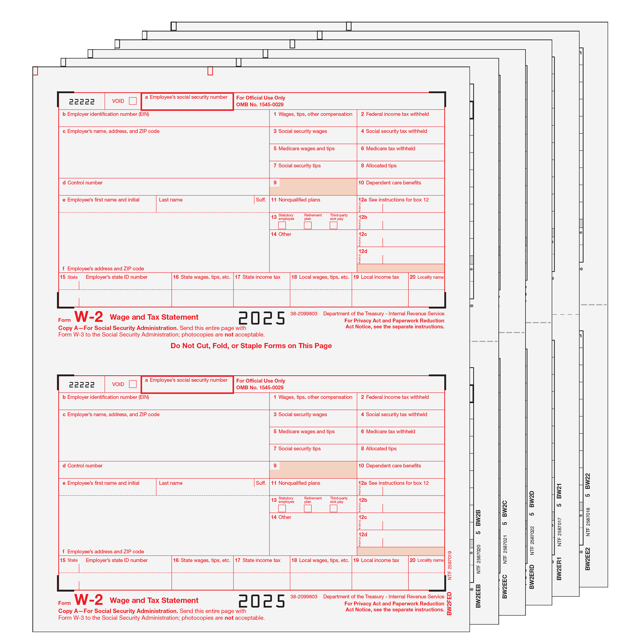Form W2 Preprinted 6-Part Set. This 6-part traditional preprinted laser set includes 2-up forms: