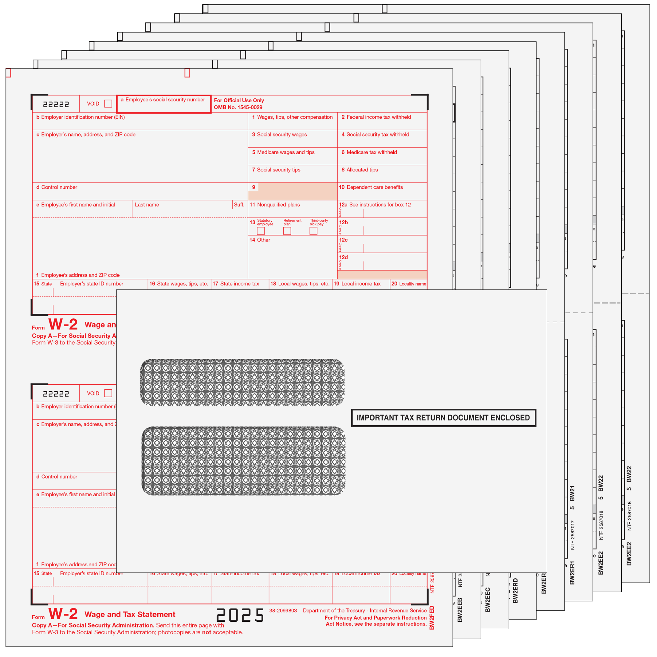 Form W2 Traditional Kit. This 8-part laser set includes: